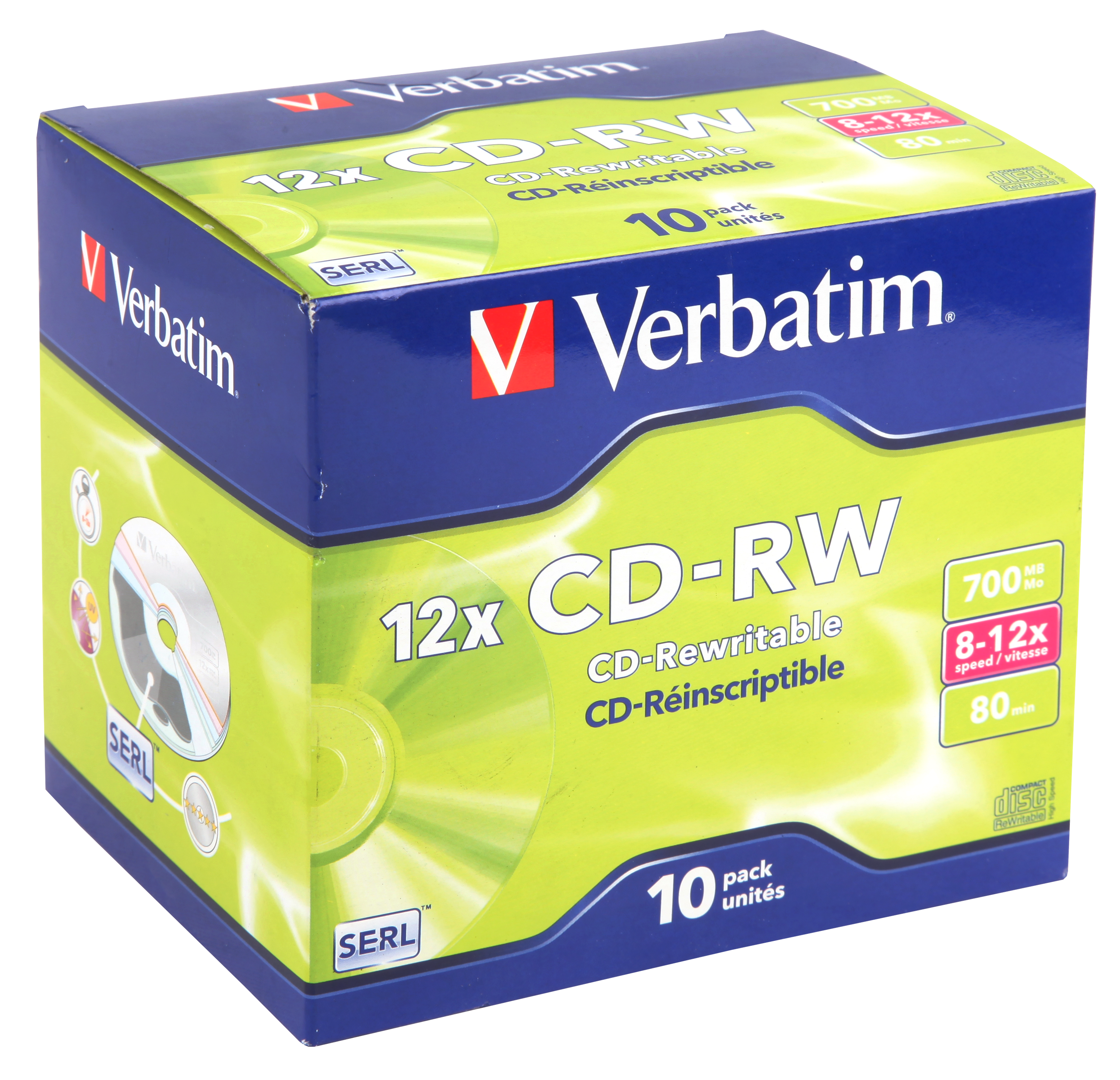 VERBATIM CD-RW 8X12X 700MB 10 PACK JEWEL CASE – M43148