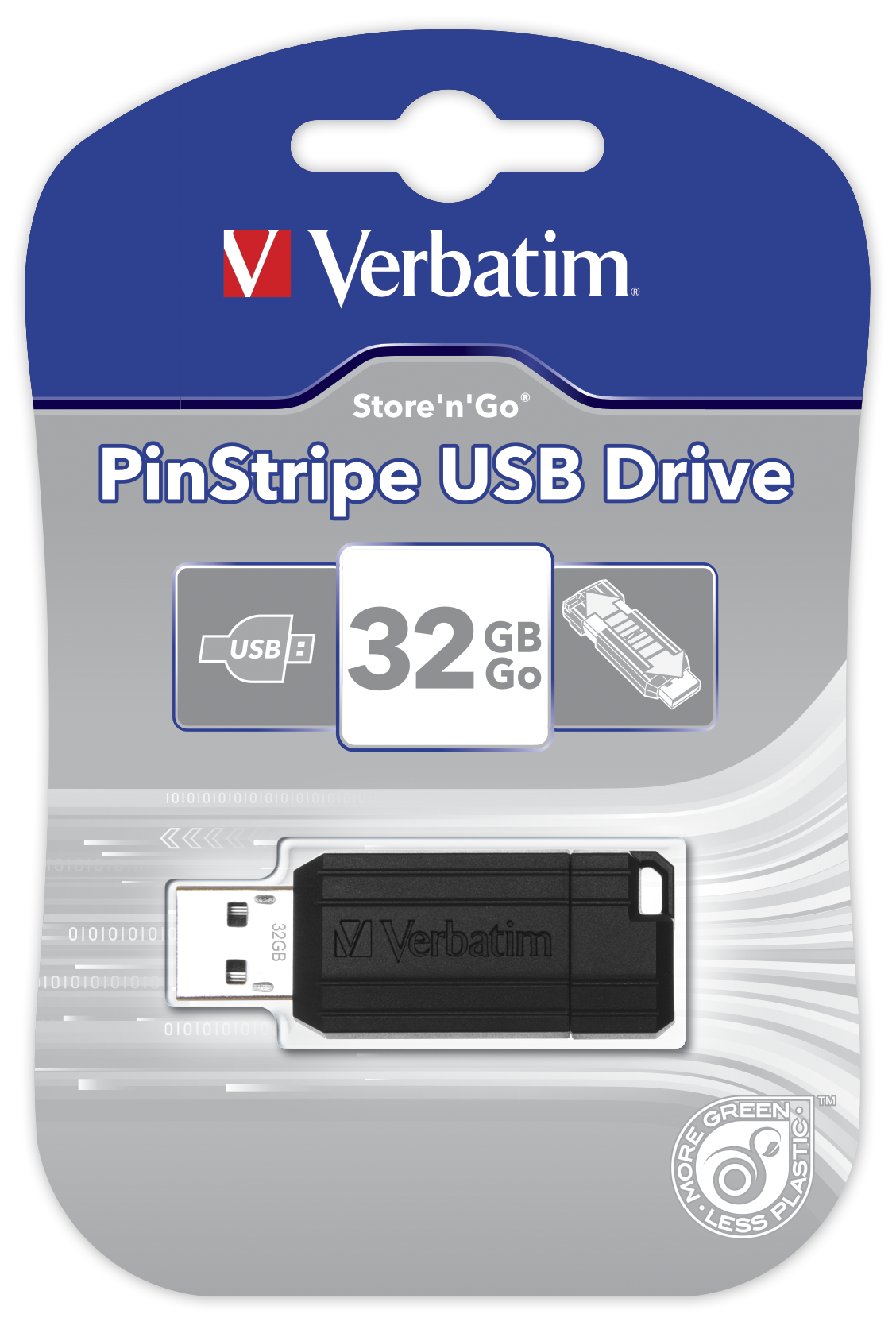 VERBATIM M49064 STORE & GO HI SPEED PINSTRIPE BLACK 32GB FLASH DRIVE